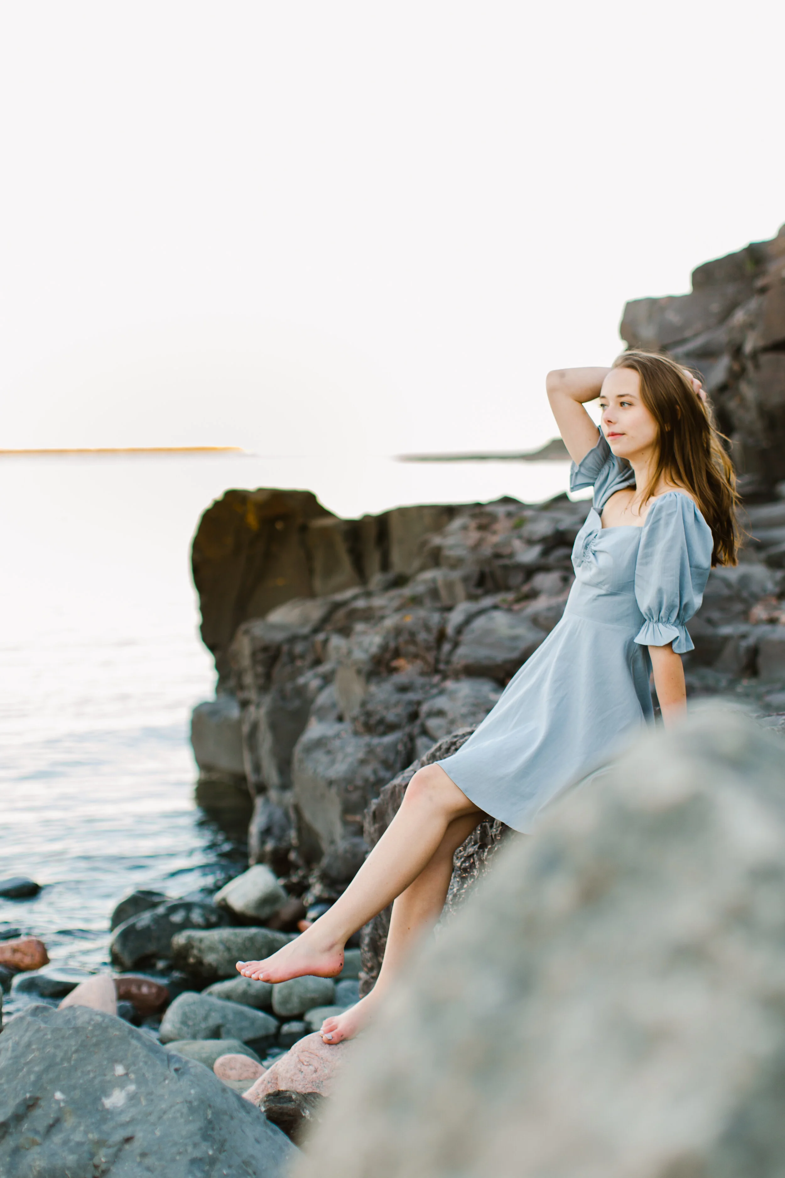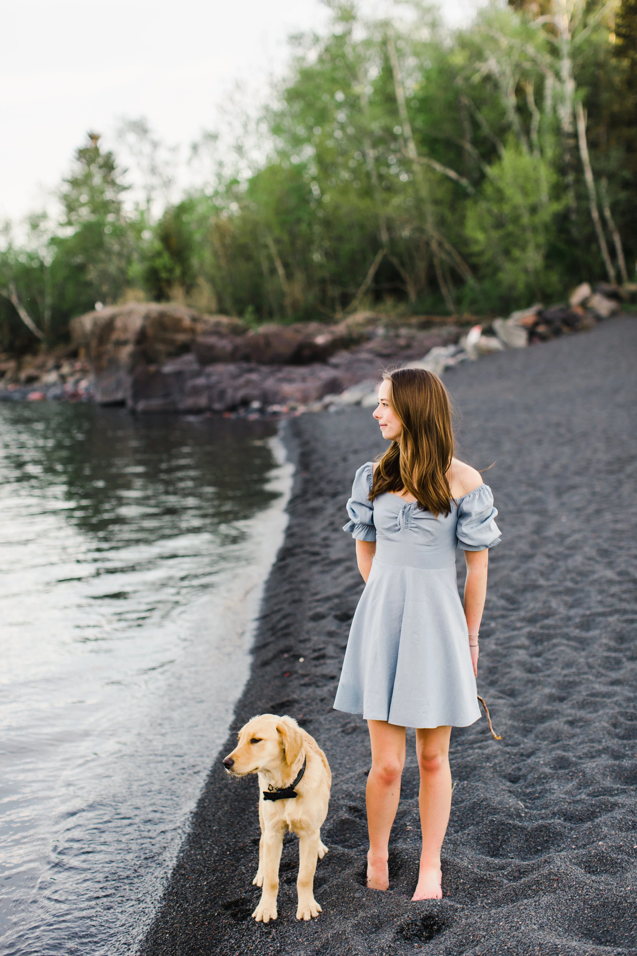 Oh Camryn! Her senior session was an absolute dream to shoot! During her initial senior meeting, I asked her what she envisioned for her dream senior session…and she started talking about all of the many adventures she grew up having in Northern Minnesota…camping in the boundary waters every year, and more hikes than she can count. There couldn’t have been a more perfect location for her session than along the shores of Lake Superior - and her session date ended up falling on a day that had the most stunning golden hour lighting, perfect weather…and she brought her cute Golden Retriever puppy along for some photos :).